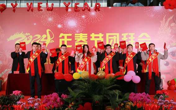 新春佳節(jié),是團(tuán)圓與慶祝的時(shí)刻,也是回顧與展望的交匯點(diǎn),在這辭舊迎新的美好時(shí)刻,公司舉辦了一場(chǎng)別開生面的春節(jié)團(tuán)拜會(huì),年會(huì)現(xiàn)場(chǎng)被裝飾得如詩如畫,璀璨的燈光映照在每個(gè)角落,營(yíng)造出溫馨而熱烈的氛圍,員工們齊聚一堂,共同慶祝這一盛事?偨(jīng)理羅賢峰首先發(fā)表了新年致辭,羅總經(jīng)理向全體員工一年的辛勤付出表示感謝,并為大家送上了新春祝福。
