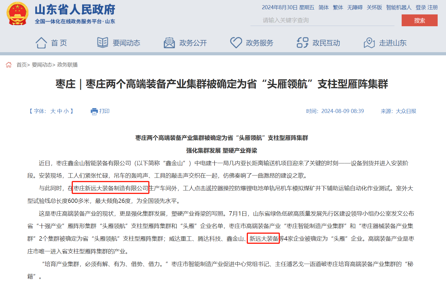 喜訊!今年8月我公司榮耀入選山東省“頭雁”企業(yè)名單。7月1日,山東省綠色低碳高質(zhì)量發(fā)展先行區(qū)建設(shè)領(lǐng)導(dǎo)小組辦公室發(fā)文公布省“十強產(chǎn)業(yè)”雁陣形集群“頭雁領(lǐng)航”支柱型雁陣集群和“頭雁”企業(yè)名單,棗莊市高端裝備產(chǎn)業(yè)“棗莊智能制造產(chǎn)業(yè)集群”和“棗莊器械裝備產(chǎn)業(yè)集群”2個集群被確定為省“頭雁領(lǐng)航”支柱型雁陣集群;其中我司被確定為“頭雁”企業(yè)。
